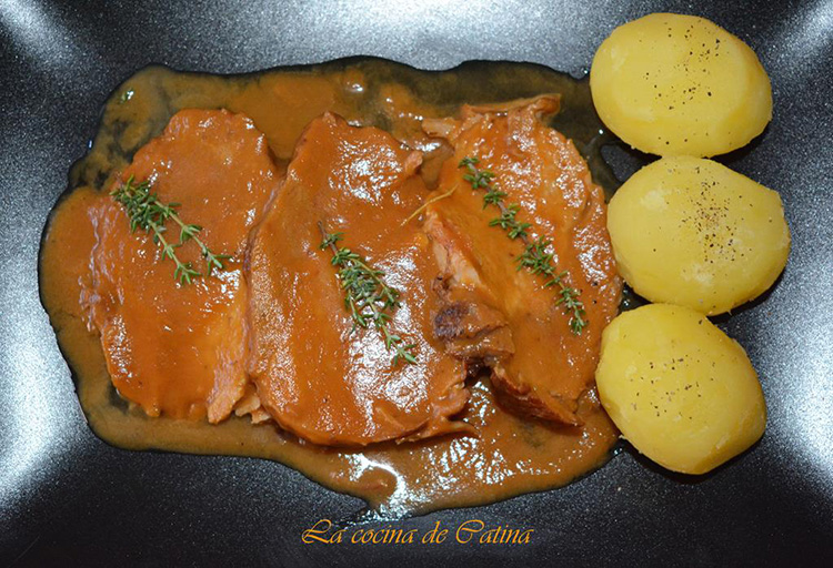 Servimos la carne con la salsa y las patatas, aderezamos con un poco más de perejil, romero o tomillo.