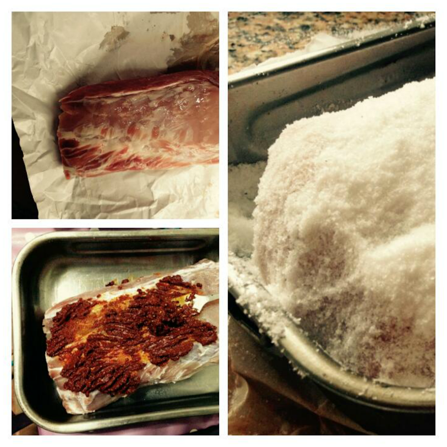 -Ponemos por encima el lomo y lo cubrimos todo de sal.
