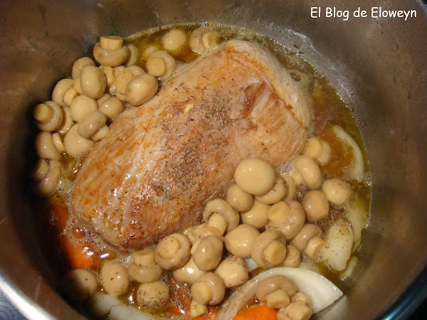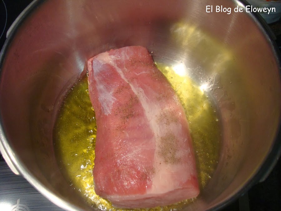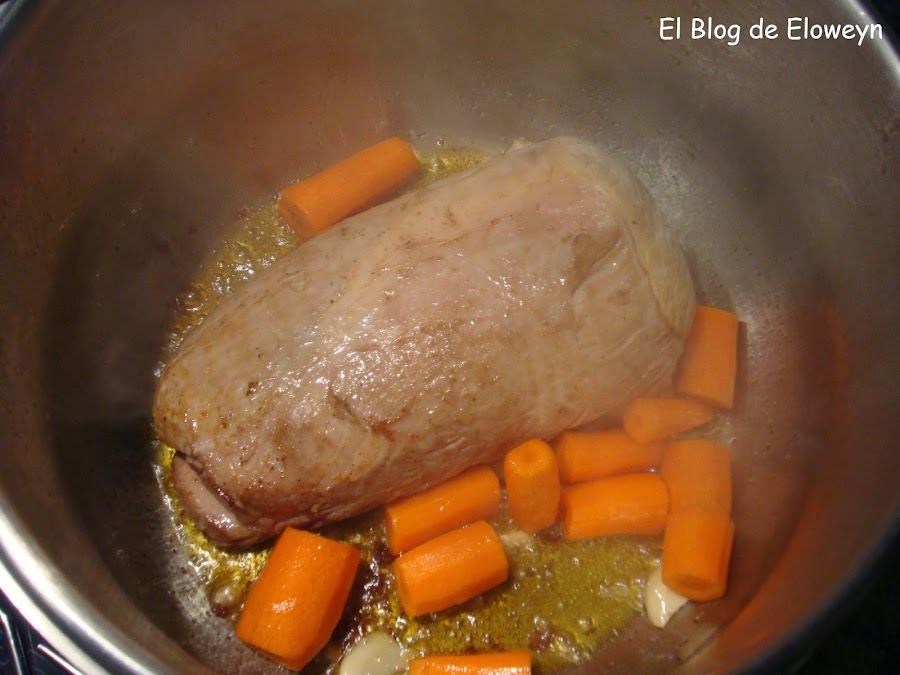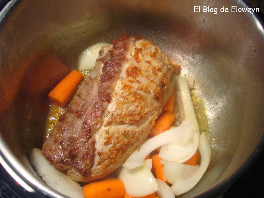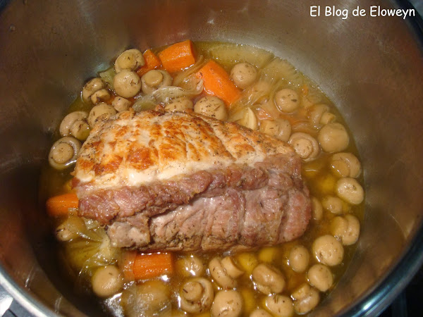 Otra cosa que tengo que decir... me ayudó mi marido... sí, mi marido (Muchas gracias, marido... jajaja). De hecho, creo que cocina mejor que yo... El lomo pesaba más de un kilo, y lo puse en la olla a presión... y a la hora de darle la vuelta, como la olla es tan alta, no había forma. No podía con él!!! Por lo tanto, se ofreció a ayudarme, al final se animó y casi lo hizo todo él!! Por lo tanto, muchas gracias... jajaja.