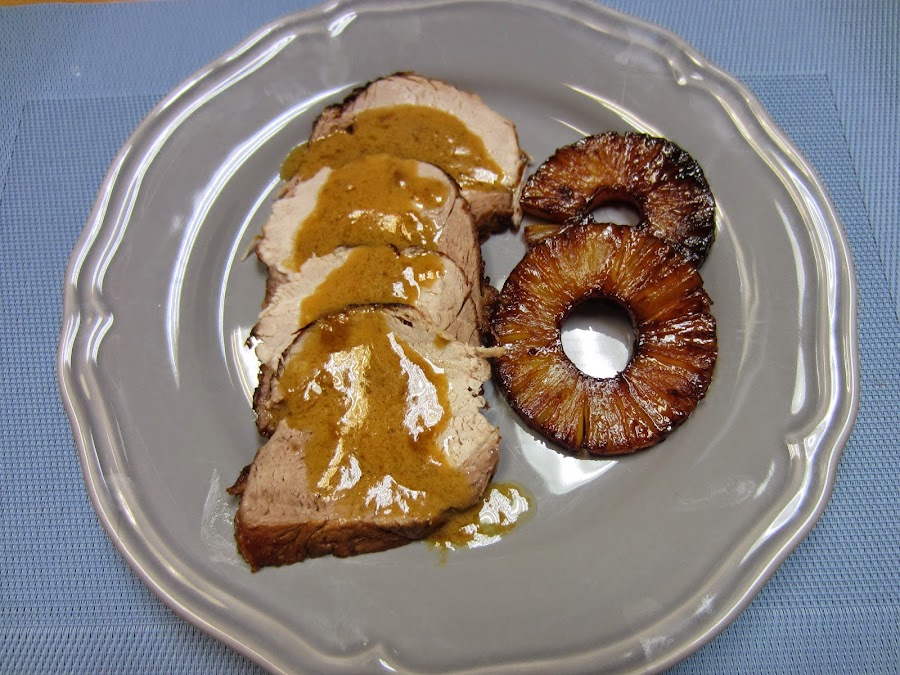 Lo ponemos en una fuente de horno y añadimos el zumo de limón y el jugo de piña.