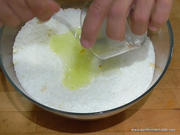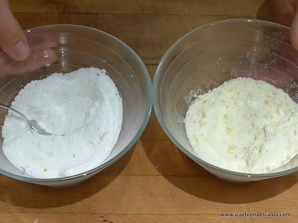 Y ahora estas dos mezclas las mezclamos con los 2 kg. de sal para hornear.