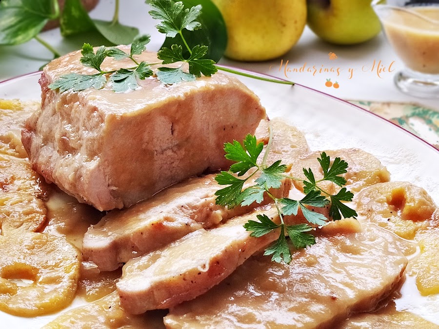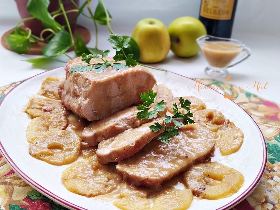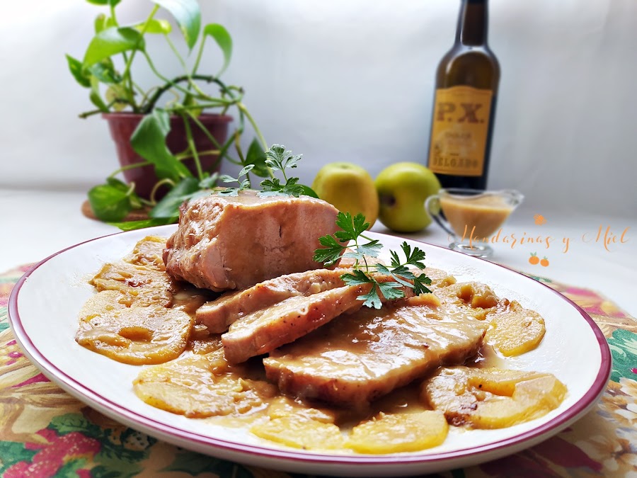 Con esos ingredientes enseguida pensé en esta receta que suelo hacer en alguna ocasión especial; el lomo al horno con manzana al Pedro Ximenez es una receta fácil para una comida o cena, rica y diferente.