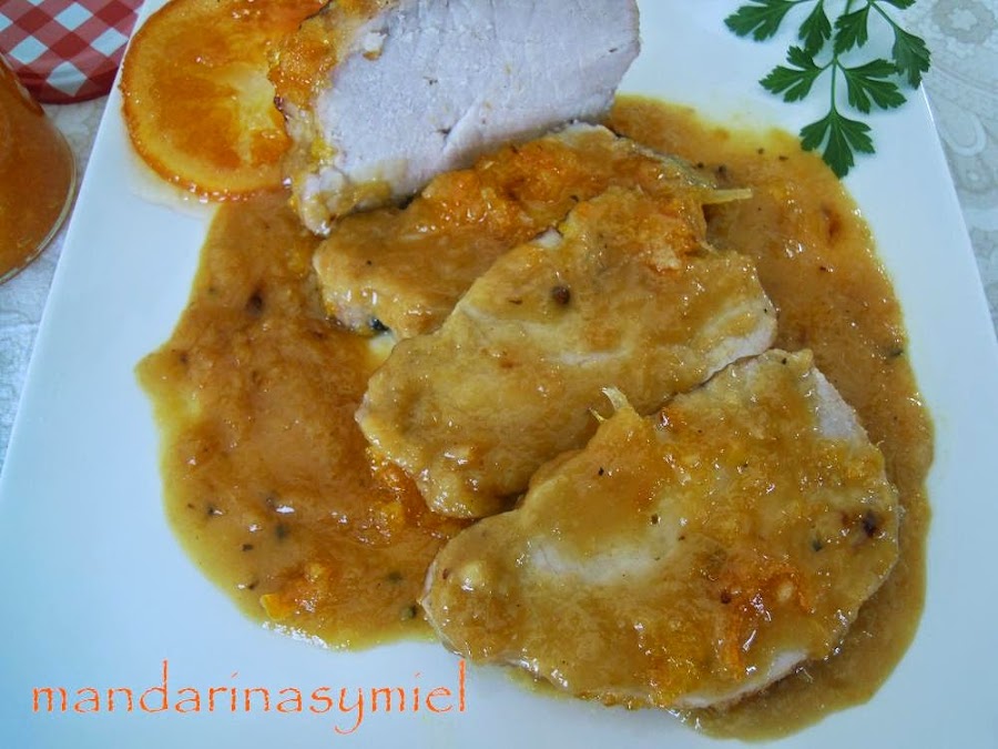 Parece que al lomo le queda muy bien la manzana, pero os aseguro que con naranja, está delicioso y con mermelada de albaricoque o de higos también.