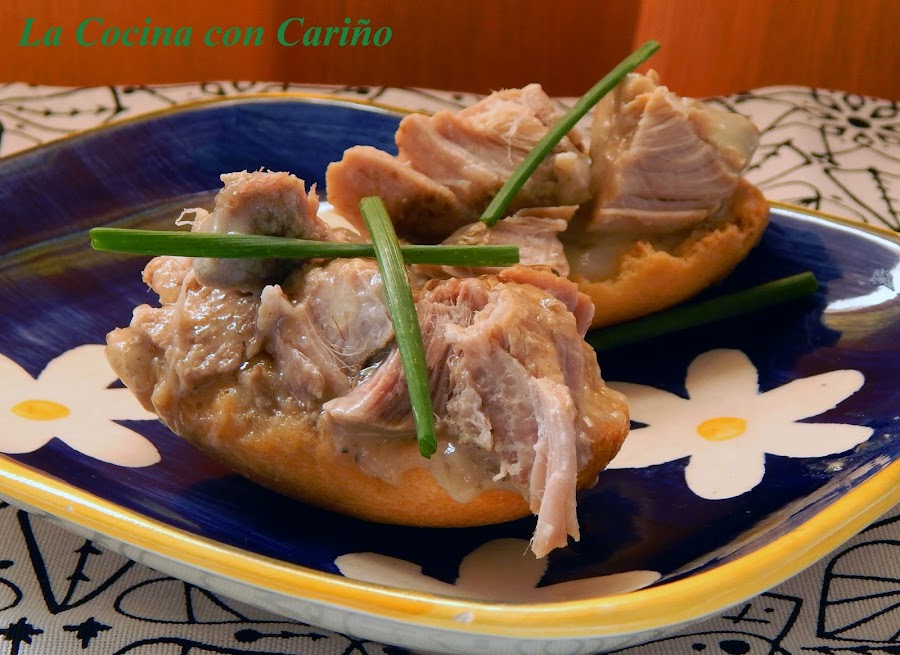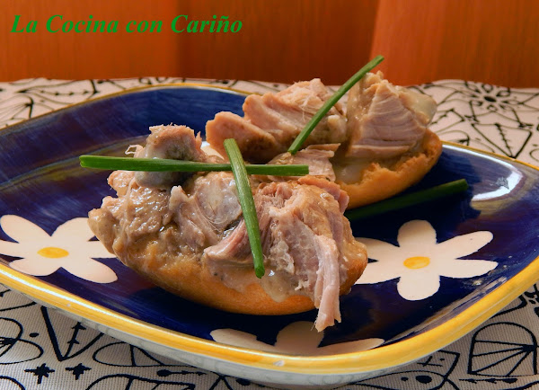 Es una receta de las de toda la vida y que si no hace mucho calor, nunca falla en una reunión, cena, comida en la azotea o el patio, etc. Proviene de los tiempos en que no existía manera de conservación de las carnes, salvo, el ahumado, o el salado y como no, el meterlas en manteca de cerdo.