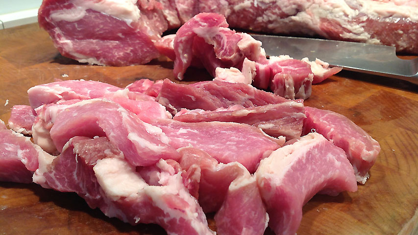 Corta el lomo en lardones gruesos y saltéalos en una sartén a fuego fuerte y sin aceite.