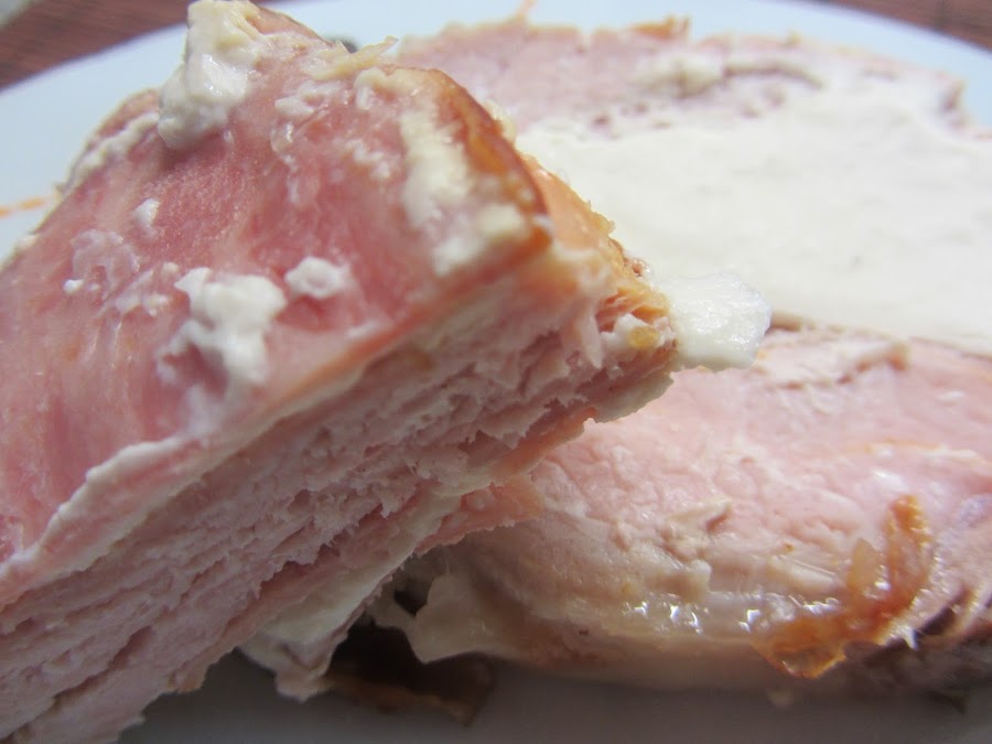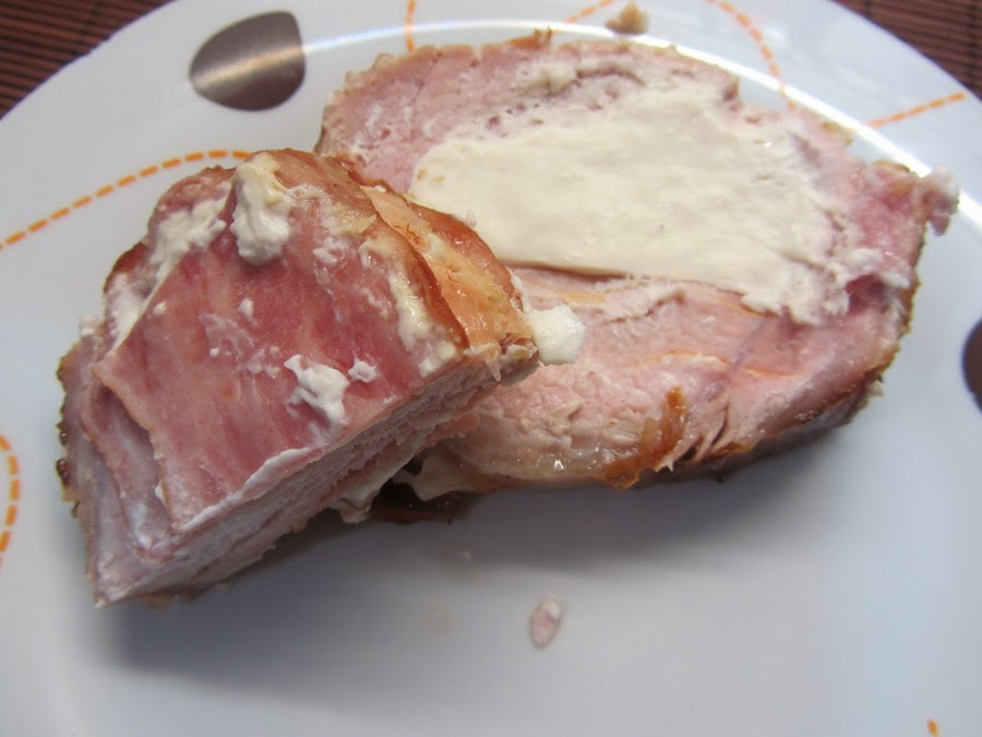 1'300 grs de lomo de cerdo en una pieza 12 lonchas de queso blanco 12 lonchas de bacon de pavo