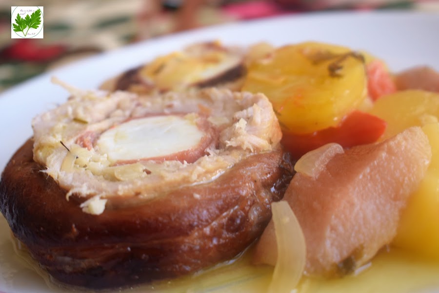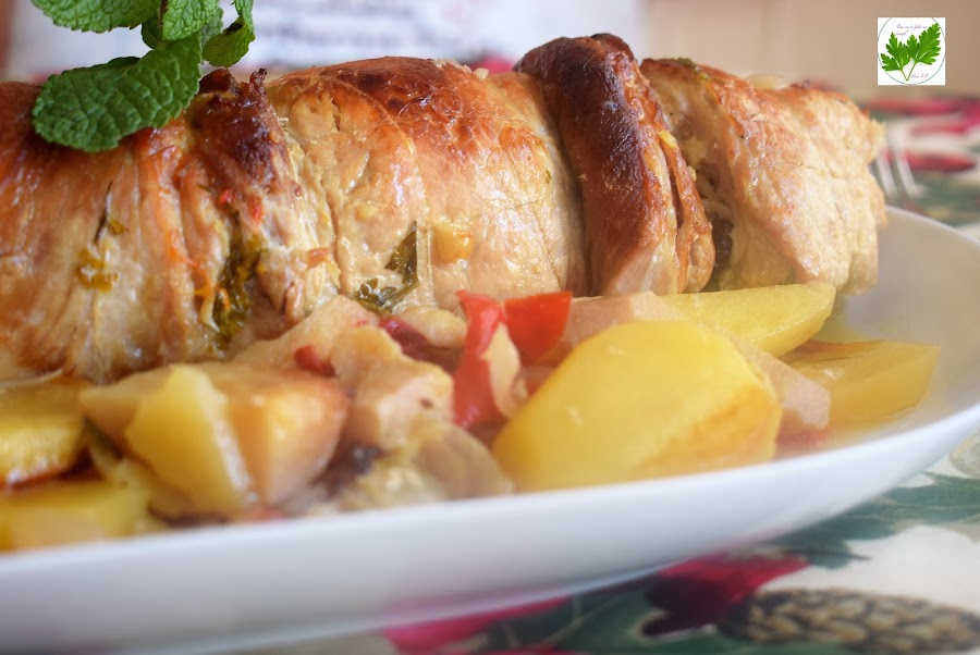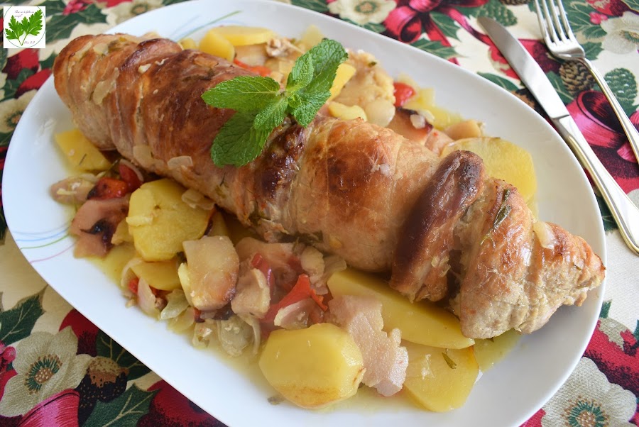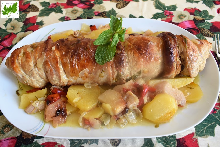 Iremos sacando los adornos navideños, el árbol, pondremos el Nacimiento y nos dispondremos a pensar en el menú para las fiestas que llegarán muy pronto. Casi siempre opto por platos que se puedan preparar con antelación, pues son los que más facilitan el trabajo en la cocina. Hoy propongo lomo de cerdo relleno, con guarnición de patatas y membrillo. Cocinado todo a la vez en el horno es una manera muy fácil de elaborarlo. Se puede cambiar o añadir otras frutas, ya sean peras, manzanas, persimón... Varía según tu gusto.