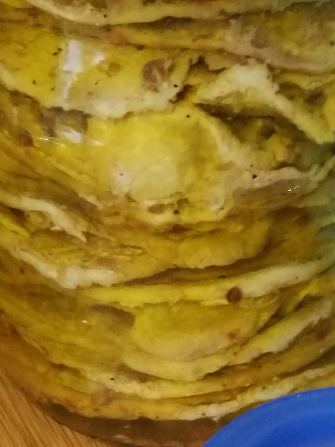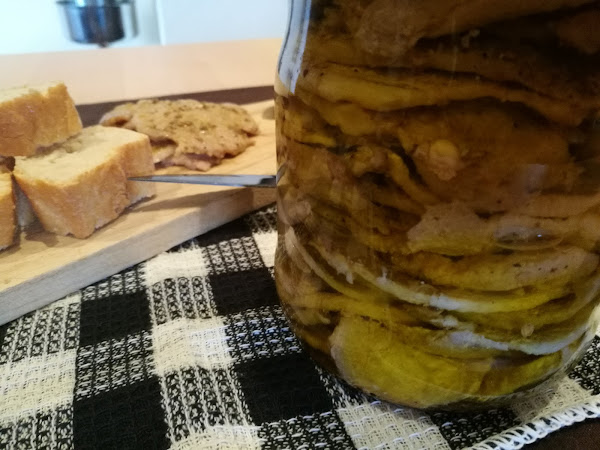 - Cubrimos con el adobo que haya quedado en la bandeja o en la plancha, y acabamos de rellenar el bote con aceite.