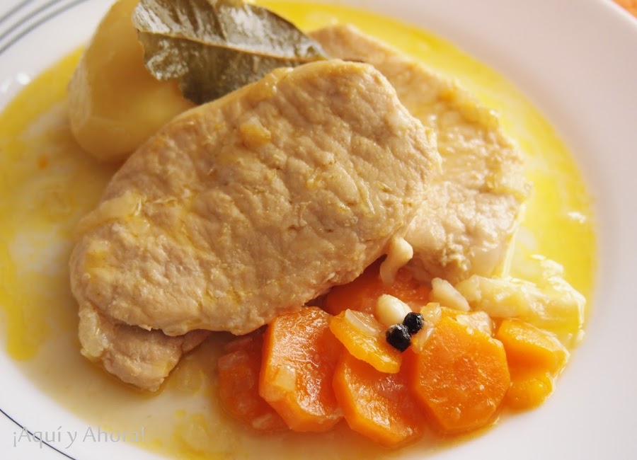 He puesto en el título de la entrada Lomo en escabeche, porque utilicé la parte del lomo del cerdo en vez del jamón pero os puedo decir que está igualmente de rica.