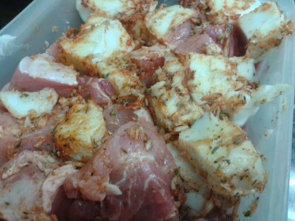Agregamos todo el "majaíllo" al lomo, mezclamos y guardamos en el frigorífico durante toda la noche. Es conveniente mezclar los ingredientes de vez en cuando para que se impregnen bien todos los trozos de lomo y manteca del adobo.