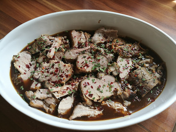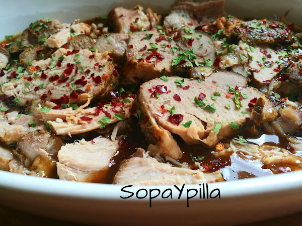 Otra de las recetas que estaba deseando probar en mi olla lenta, era este lomo, en una pieza, para comprobar si quedaba jugoso....buffff queda alucinantemente sabroso y tierno! riquísimo!