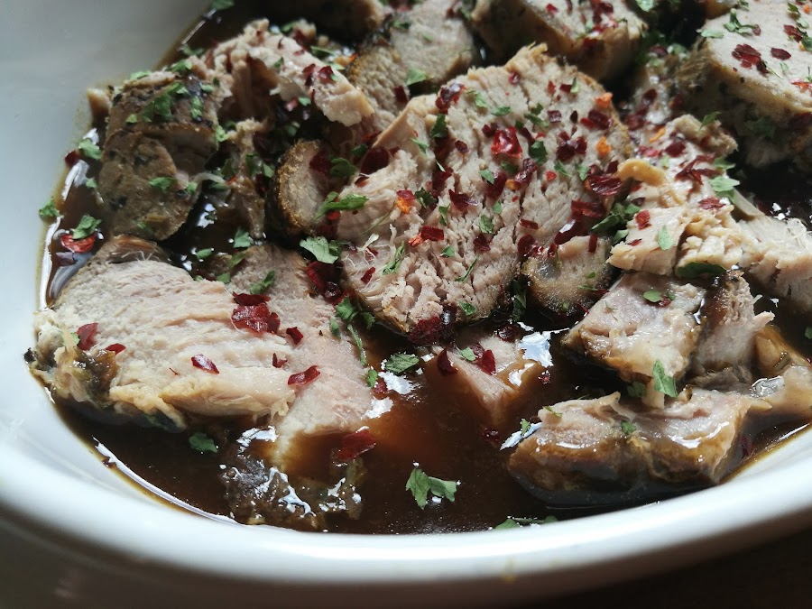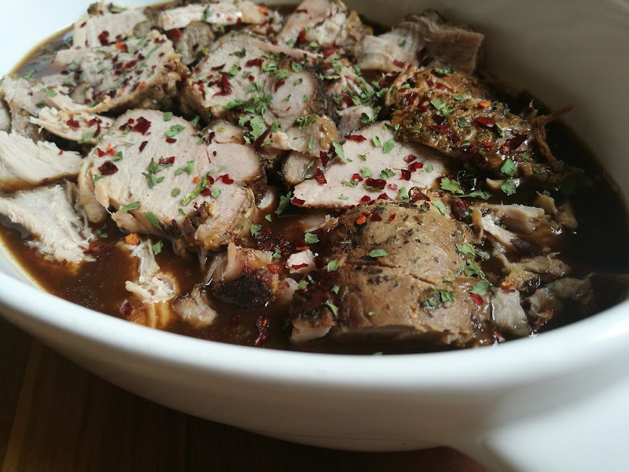 1 lomo de cerdo en una pieza, que os quepa en la olla lenta.