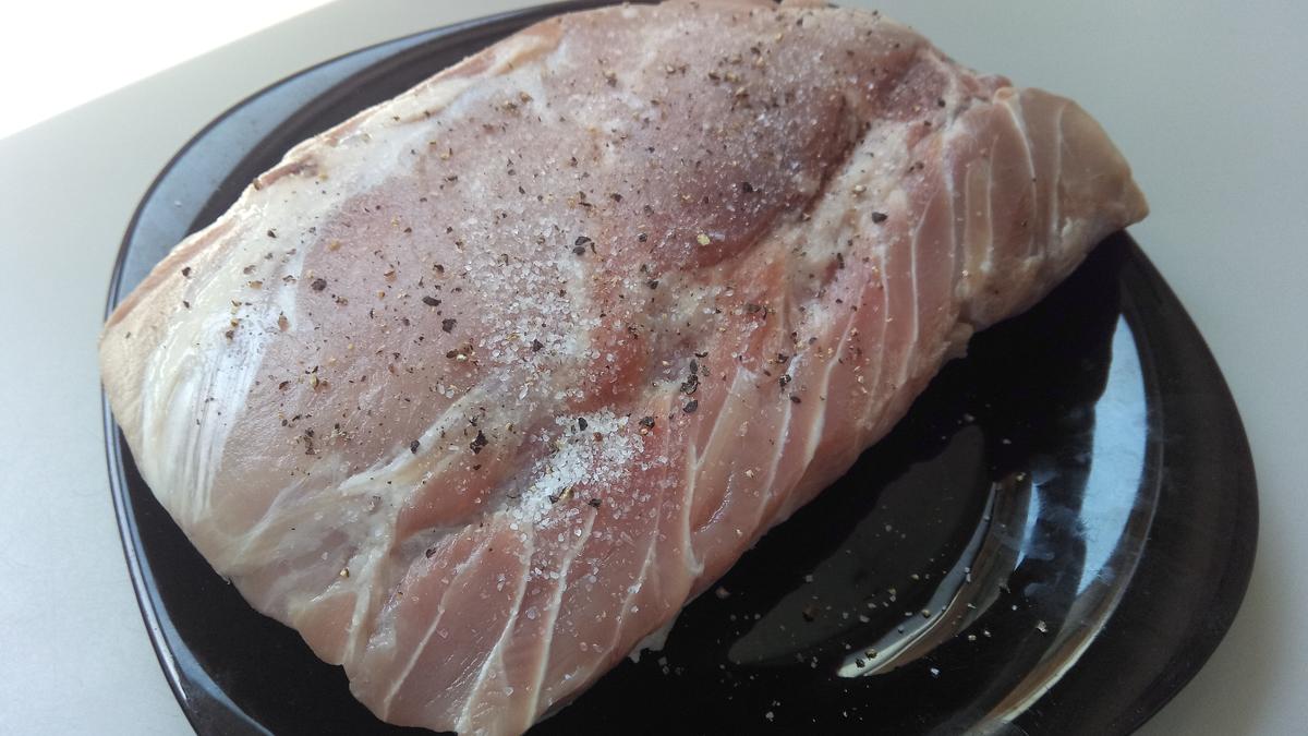 Sacamos el taco de lomo, y lo cortamos en filetes gruesos, de unos 4 cm aproximadamente,