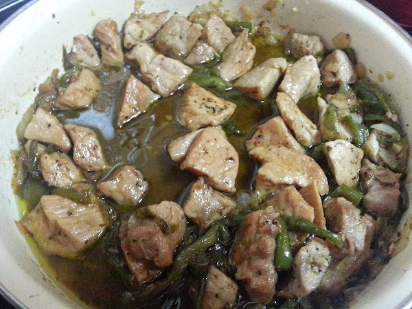 Dejamos freír todo junto hasta que la carne esté casi hecha.