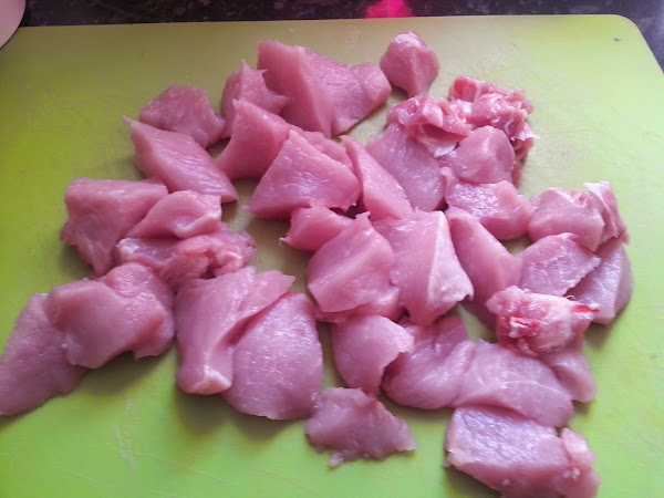 Mientras, troceamos pieza de lomo y salpimentamos.