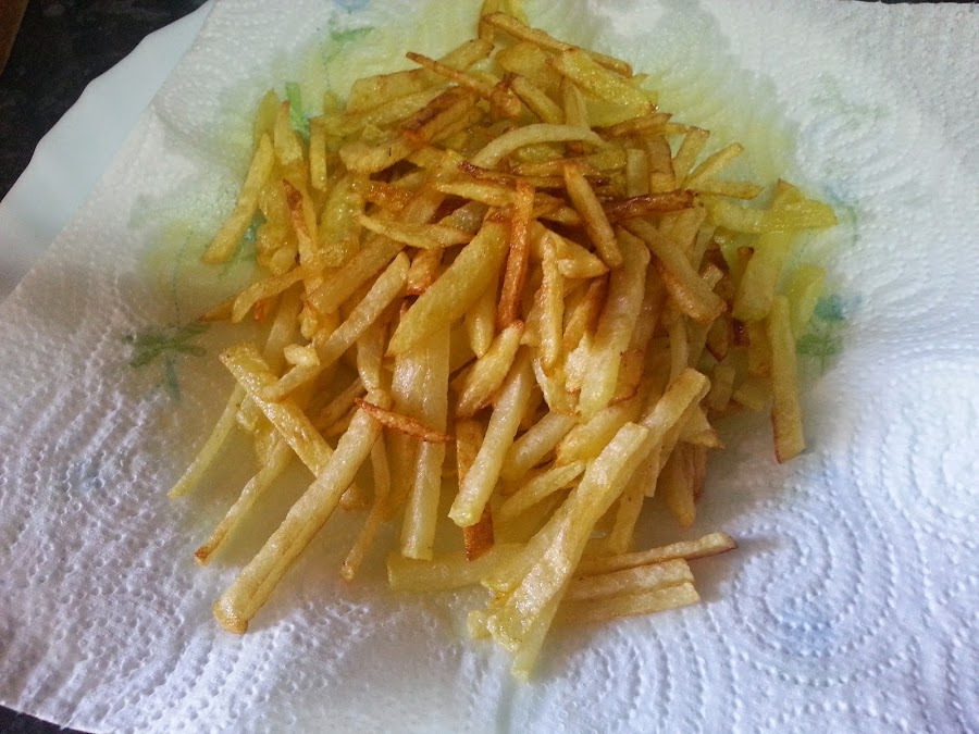 Freímos en otra sartén con aceite y cuando estén colocamos sobre papel absorbente para que escurra el aceite.