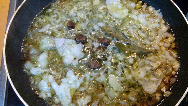 Añadimos al ratito un vasito de vino blanco, una hoja de laurel y la pastilla de caldo de carne. Dejamos rehogar unos minutos.