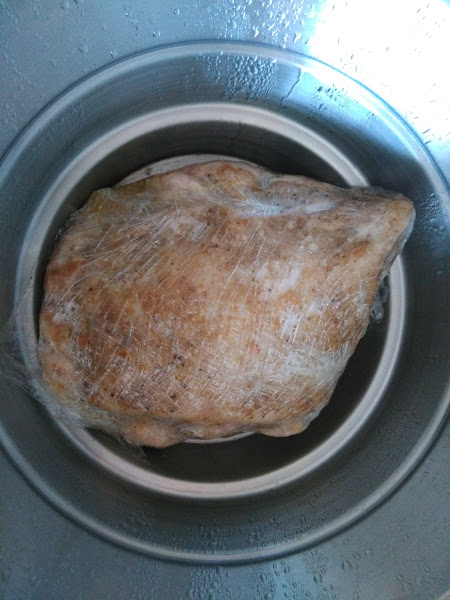 Retiramos el film a la carne y cortamos lo más finamente que podamos (es mejor si se prepara de un día para otro y cortarla recien sacada del frigorífico).