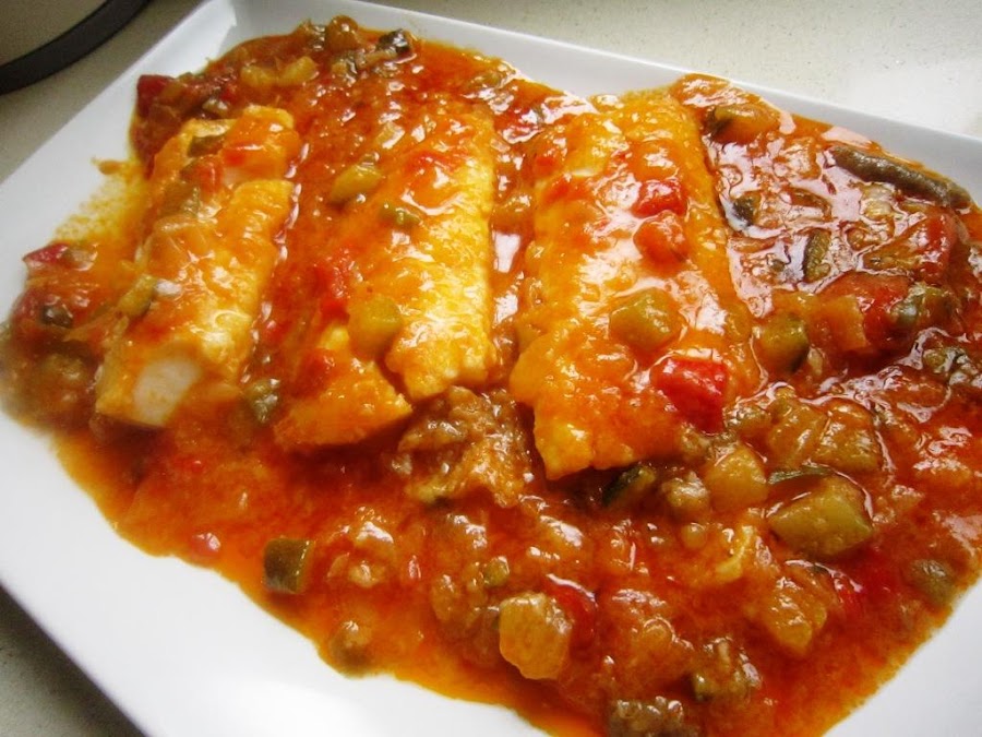 Se puede hacer con lomos de cualquier otro pescado: rape, merluza, rosada, pez de San Pedro, pez espada... Siempre que los lomos no tengan espinas, al tener las verduras por encima, no se verían y no es agradable ni seguro encontrarse espinas al comer. No es cuestión de salir corriendo a urgencias con una espina de pescado atravesada en la garganta.Ingredientes