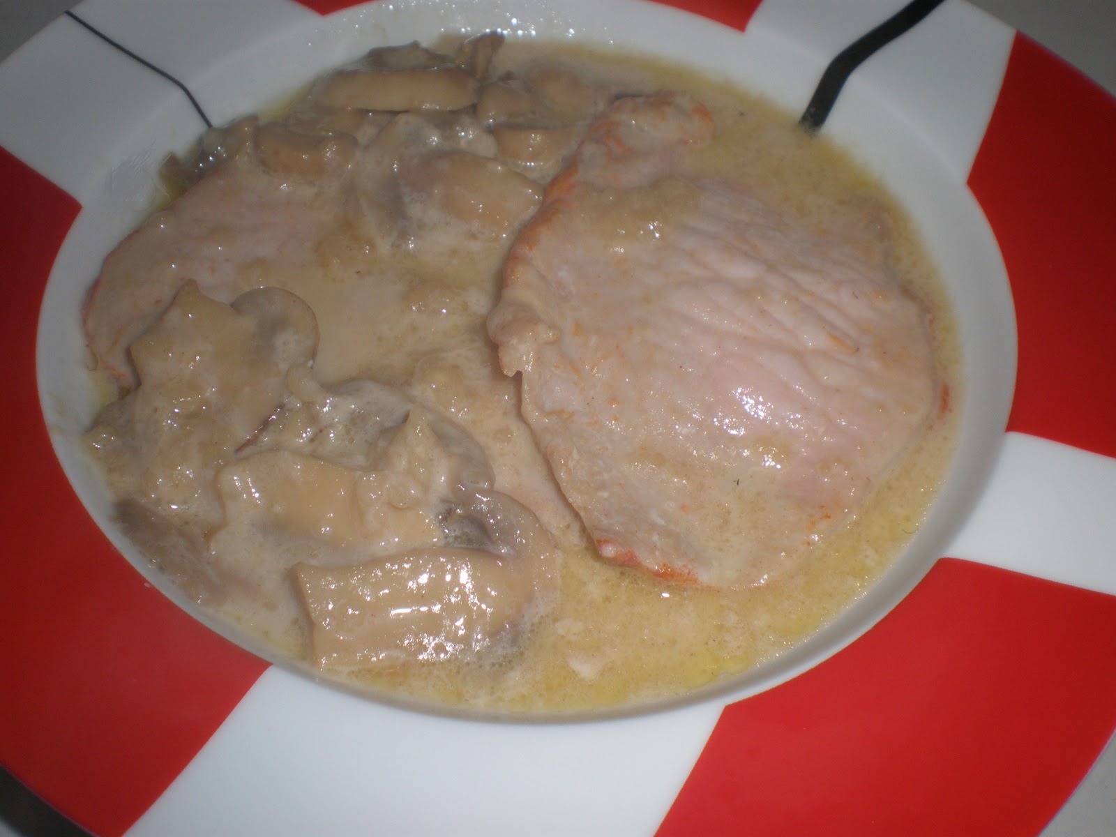 1º - Salamos y doramos un en la sartén con aceite los lomos de cerdo . Reservamos .