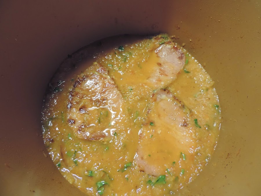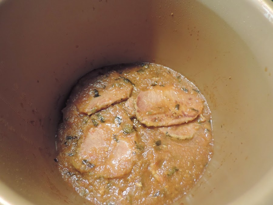 Poner los lomos en la cubeta de la olla, y añadimos la salsa que tenemos en el thermomix.