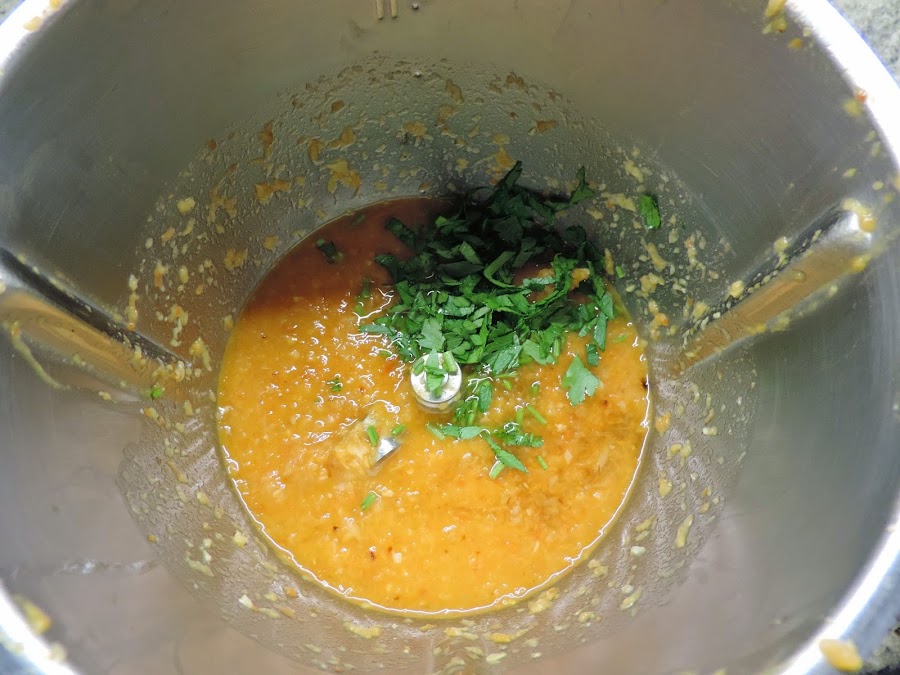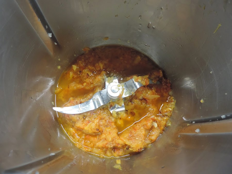 Mezclar 20 segundos, velocidad 5, para que nos quede la salsa más fina, así los que no les gusten mucho las verduras las notarán menos.