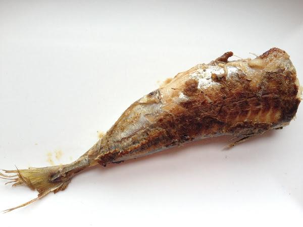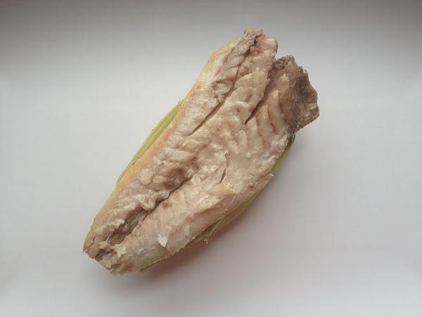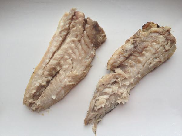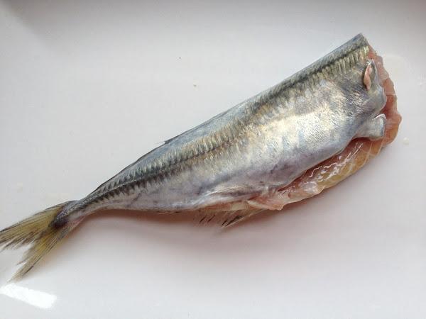 6 Una vez cocinado, con la ayuda de un cuchillo afilado, introducimos la punta del cuchillo por la parte central del chicharro tocando su espina central y sin levantar el cuchillo hacia la cola, notaremos que el lomo sale solo,dejando la espina pegada junto al otro lomito.