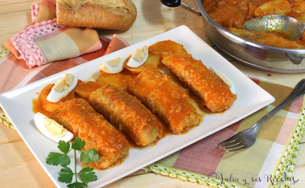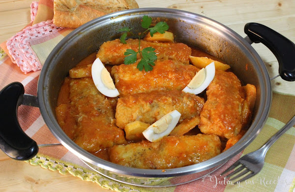 La servimos acompañada de las patatas y los huevos cocidos troceados.