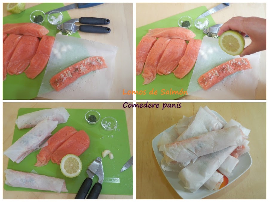 En mi caso el salmón lo he comprado ya cortado en lomos pero por si lo compras más entero lo partes en un grosor de unos 2 dedos.