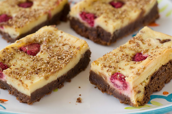 BROWNIE CON TARTA DE QUESO Y FRAMBUESAS
