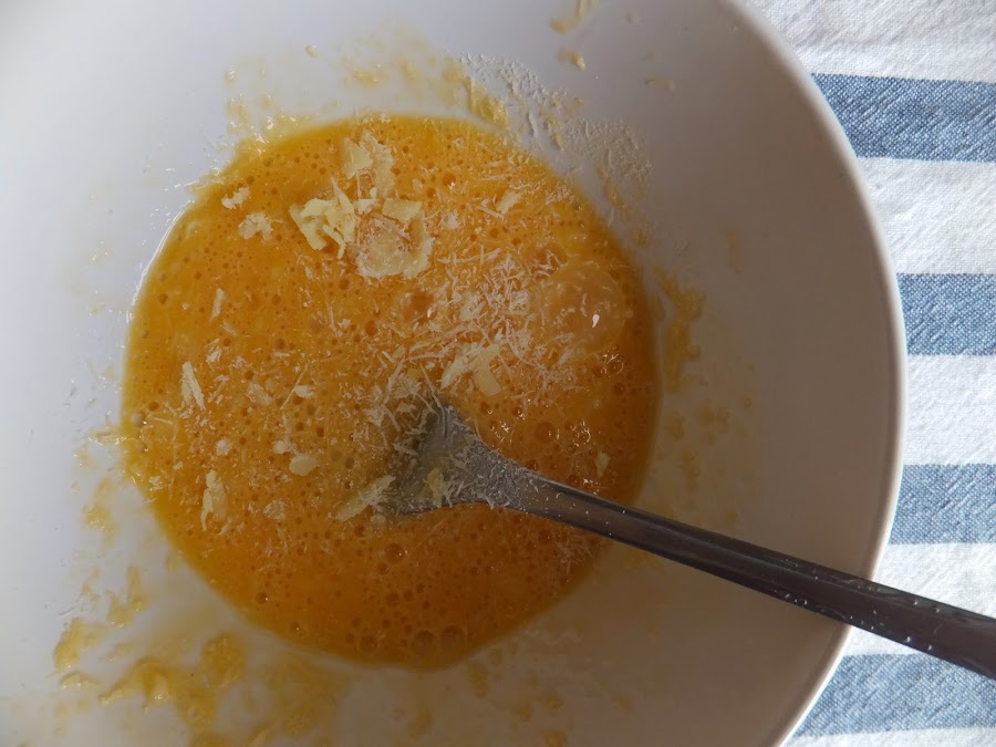 5. Vierte la mezcla de huevo batido y queso sobre los espagueti y mezcla bien. Añade un poco de pimienta molida.