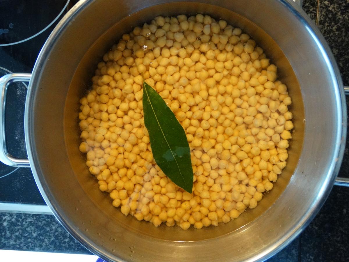 Lo primero que haremos será lavar los garbanzos y ponerlos a remojo en agua templada la noche anterior. Al día siguiente los escurrimos bien y los ponemos en la olla cubiertos con agua abundante, una hoja de laurel y sal.