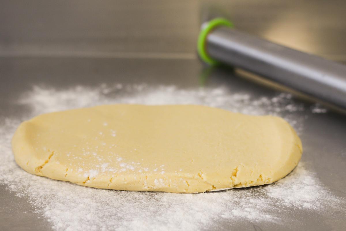 2- Es importante estirarla a temperatura ambiente, sobre todo si nos cuesta estirarla en frío y que no se quiebre. Yo, en lo personal, prefiero estirarla entre dos láminas de papel manteca, o con un poco de harina en la mesada.