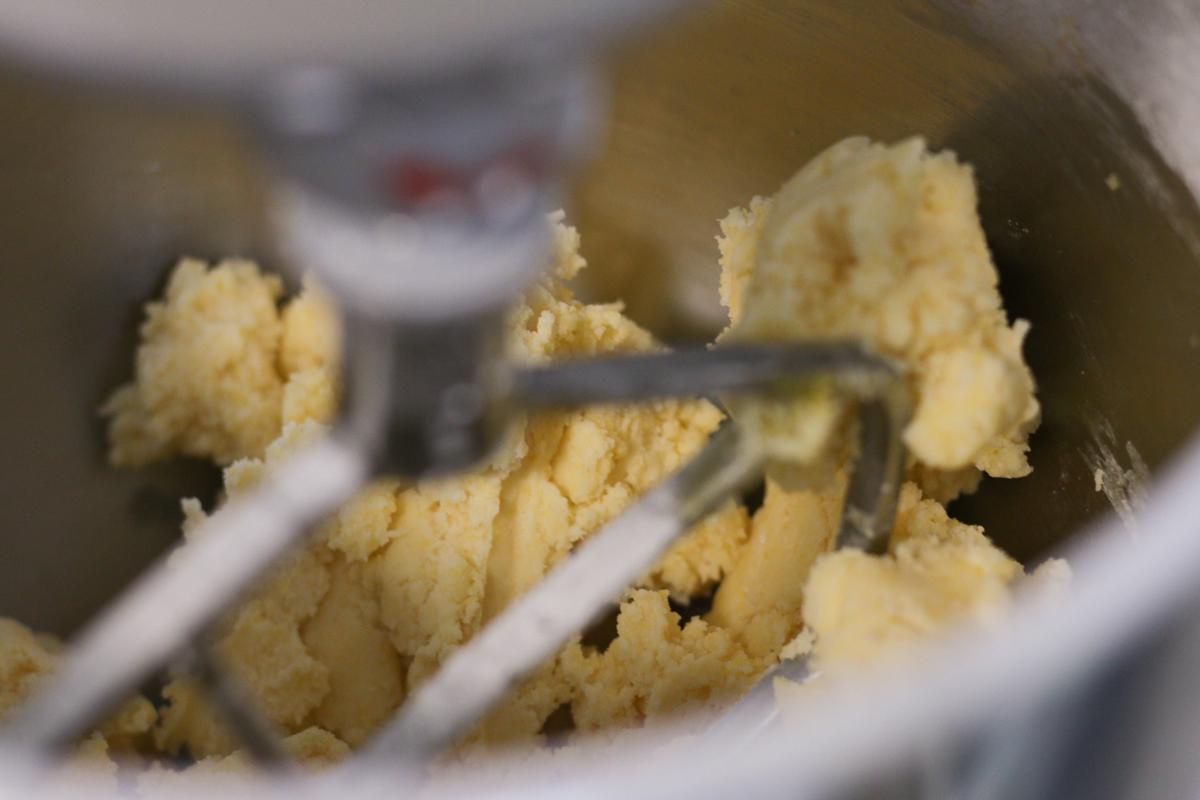 Mezclar con un batidor de alambre la manteca en cubos con el azúcar.