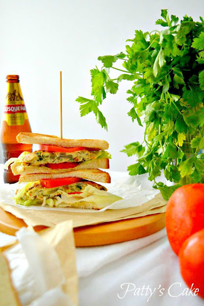 Pattys Cake nos deja un sandwich con una mezcla de sabores y aromas riquisimo. Es una versión muy especial del famoso sandwich club. Un sandwich muy completo y riquisimo que disfrutaremos visitando su blog.