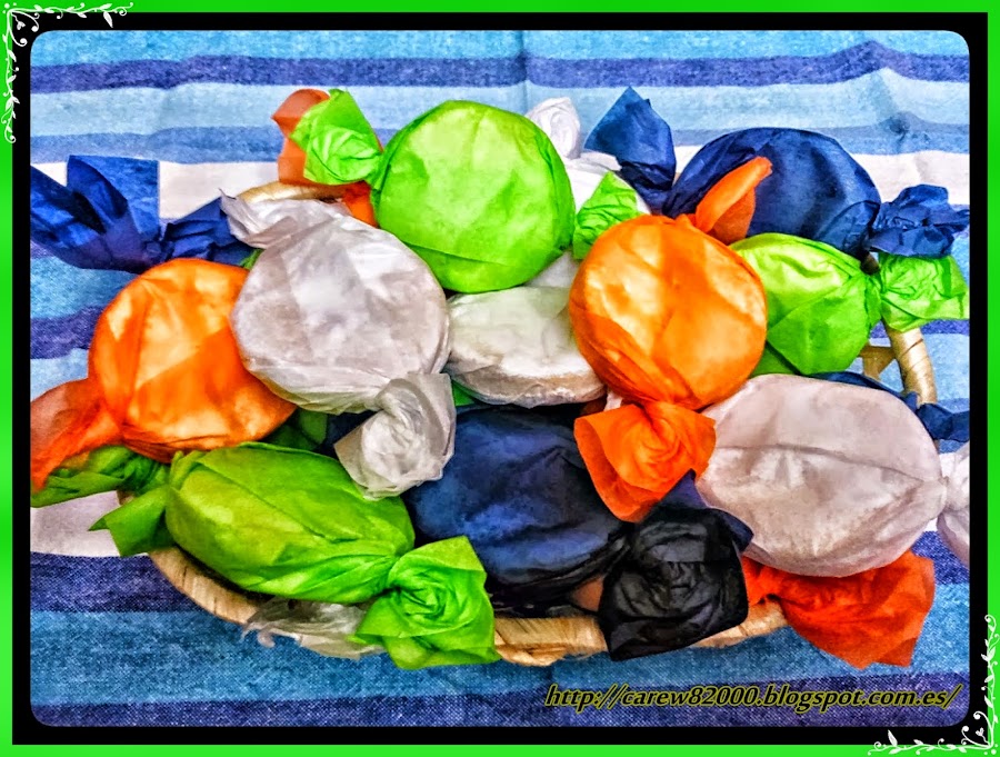 Ahora ya una vez fríos, solo nos queda pasarlos por el resto del azúcar glas y colocarlos en un plato, en mi caso los he envuelto en papel de seda de colores y hay tenéis la foto, quedan muy kukys.
