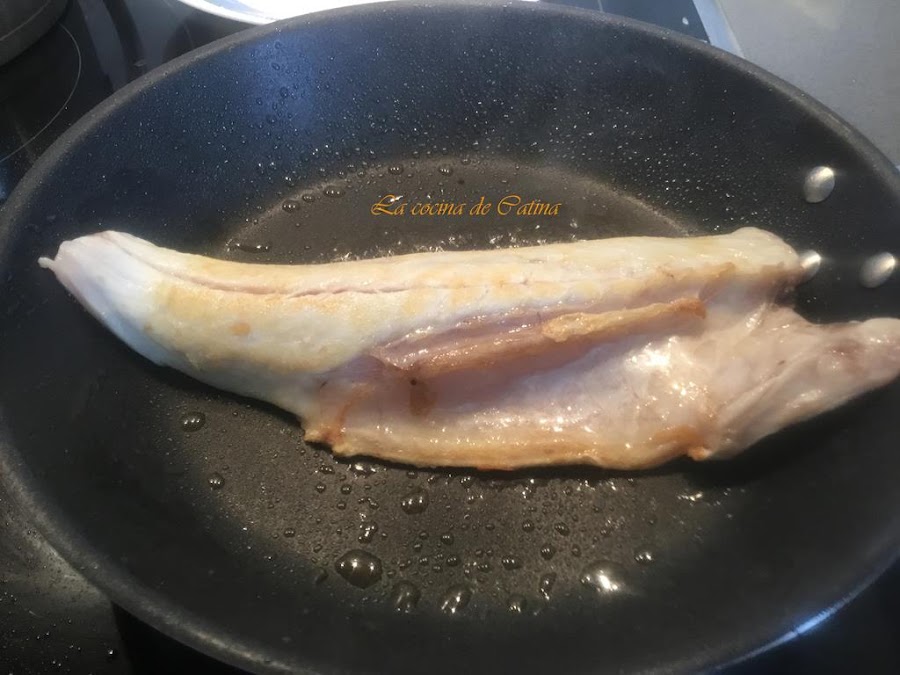 Añadimos la lubina a la cacerola y dejamos un par de minutos al fuego para que tome el sabor del sofrito.