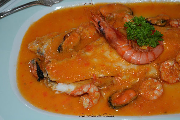 Repartimos la lubina con su salsa en dos platos, repartimos también el salteado de gambas y mejillones y decoramos con perejil. Servir enseguida.