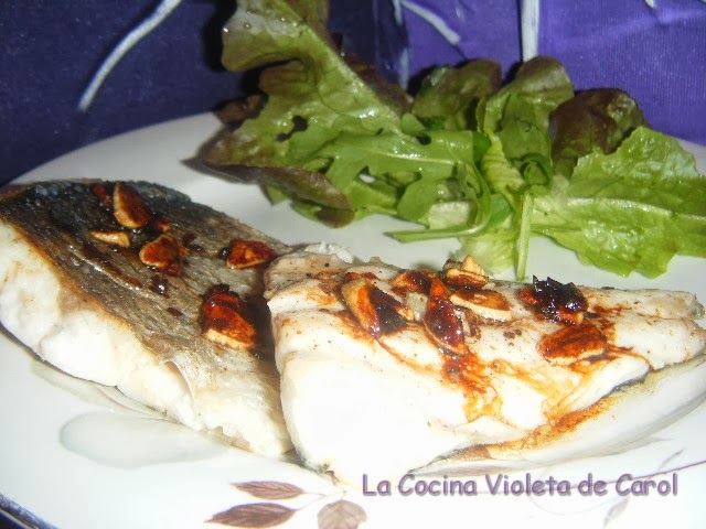 Servimos la lubina y regamos con esta salsa. Servir enseguida, sin dejar que se enfríe.