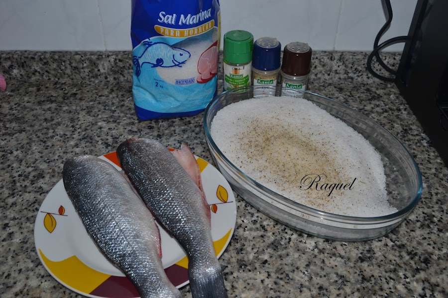 Lubina a la sal, estaba muy rica pero os advierto una cosa cuando las compréis en la pescadería pedirlas enteras con la cabeza so lo que os quiten la tripa, porque veréis yo no pensaba hacerlas de esta manera pero se me ocurrió y como ya sabéis como soy yo, me apetece algo y lo hago al momento pues las tenia para hacerlas con verduritas en el horno y cambie los planes en un plis plas y las hice a la sal, bueno todo esto que os cuento es porque la parte que tocaba a la cabeza me quedo algo salada por eso lo de comprarla con cabeza, eso no me hubiera pasado.