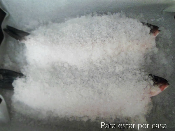 - La sal debe ser sal gruesa, apta para cocinar a la sal. En ocasiones esta sal viene humedecida, dependiendo de cada marca. Pero si la sal es seca, podemos humedecerla con agua nosotros mismos a la hora de utilizarla. También he leído por ahí que hay quien humedece la sal con clara de huevo, yo no lo he probado, pero imagino que la clara ayudará aún más a compactar la sal alrededor del pescado.
