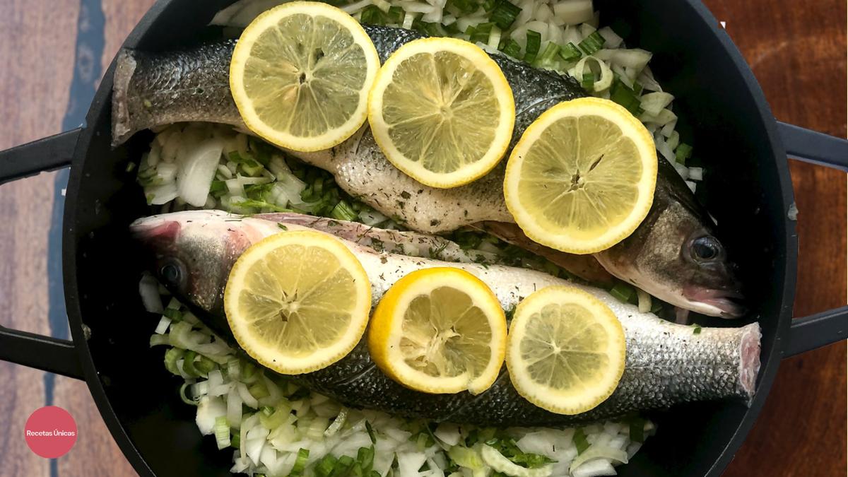 Limpiar las lubinas dejando las cabezas y hacer dos cortes superficiales en la piel por ambos lados. También se puede pedir en la pescadería que las preparen de esta forma.