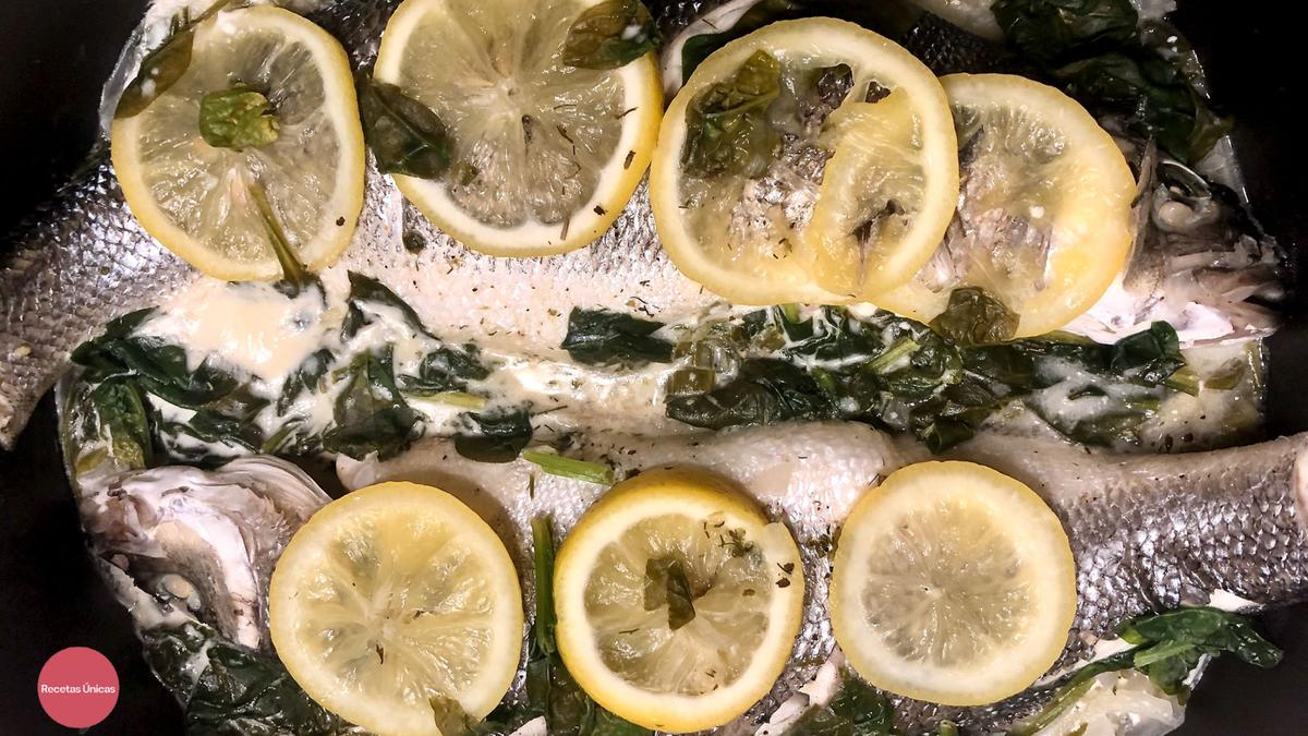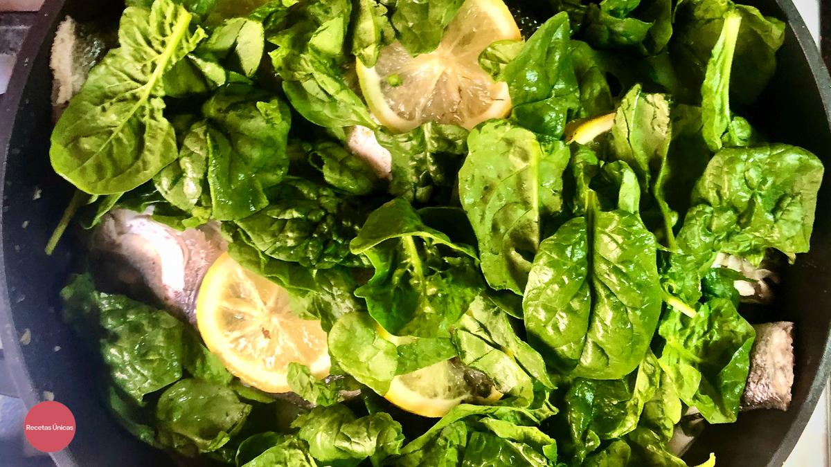 Esta receta además lleva nata (crema de leche) y espinacas que al final deja una salsa muy aromática que acompaña al pescado y hace que el plato sea más jugoso. Si se hace en el horno o microondas habría que abrir el papillote 10 minutos antes, incorporar la nata (crema de leche) y las espinacas y volver a cerrar el papillote.