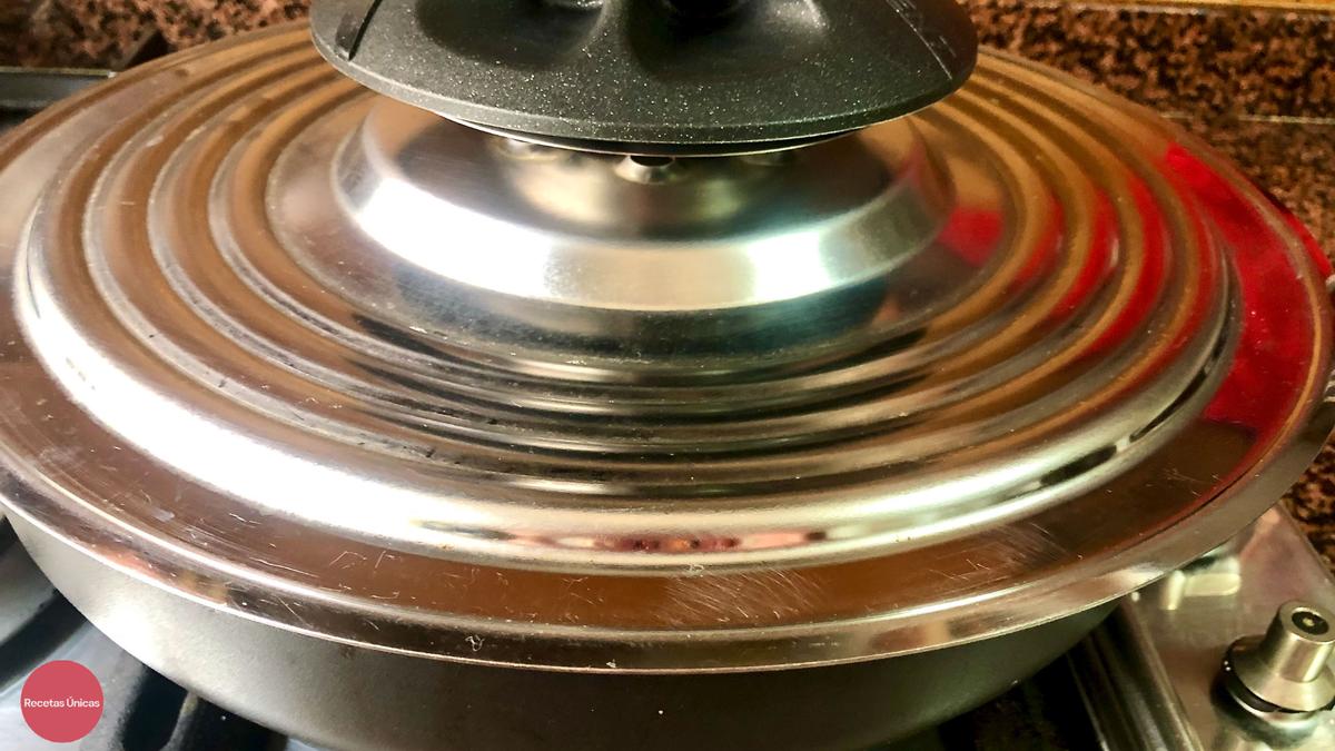 Tapar la olla con UNICO en modo horno y poner el fuego al máximo 8 minutos, después bajar a fuego medio y dejar 5 minutos.