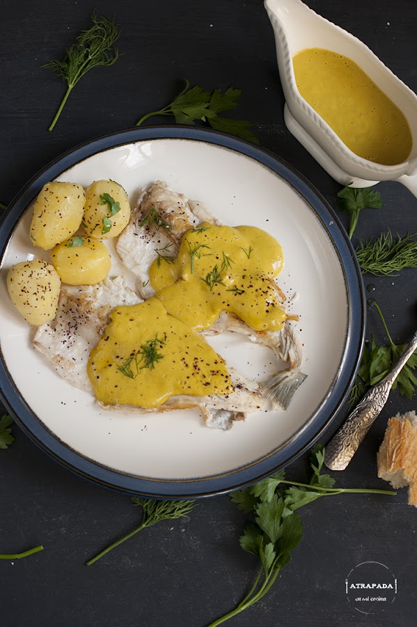 Ya empezamos a ver los primeros mangos de la zona en los mercados y fruterías, por lo que ahora toca aprovechar con ellos para cocinar. Creo que os he comentado más de una vez que nunca me como el mango como fruta, pero sí que me gusta cocinado o combinado con otros ingredientes (no se si recordáis unas milhojas de mango y queso de cabra con miel de caña y queso parmesano, ¡wow!). Tampoco es la primera vez que preparo una salsa de mango, ya os enseñaba una con pasta y salmón. En esta ocasión os presento una salsa de mango que acompaña a unas lubinas simplemente cocinadas a la plancha y acompañadas también de unas patatas salteadas. El conjunto se convierte en un plato de lujo, que además hemos acompañado de un vinito blanco del que luego os contaré más detalles.