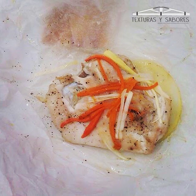 Cuando esté, retirar del horno y servir en el plato. Al papillot se le puede acompañar con una salsa andaluza