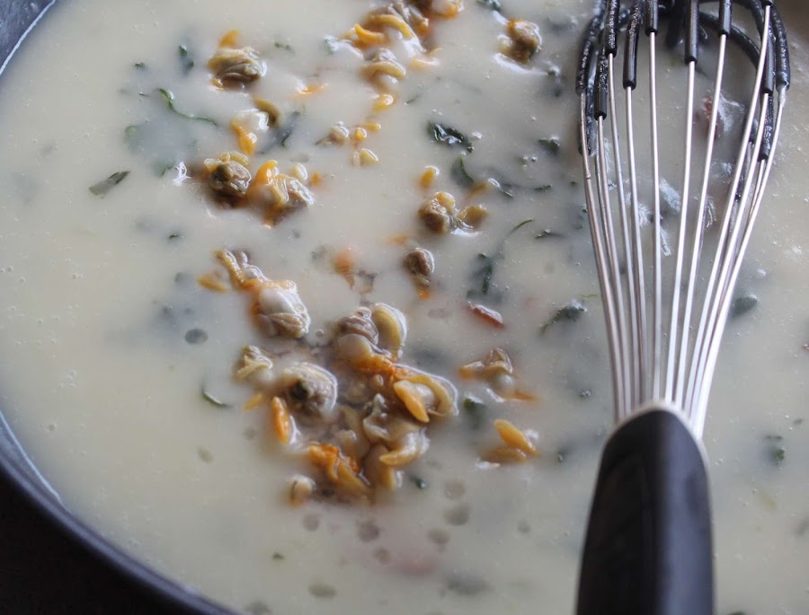 Ahora, incorporamos los berberechos y su jugo. Vamos buscando el punto de "salsa" que queramos.