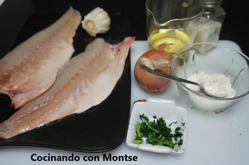 Empezaremos salando el pescado, pondremos un poco de sal y pimienta. tendremos el pescado limpio y en filetes sin espinas. Picamos la cebolla muy pequeña y los ajos.