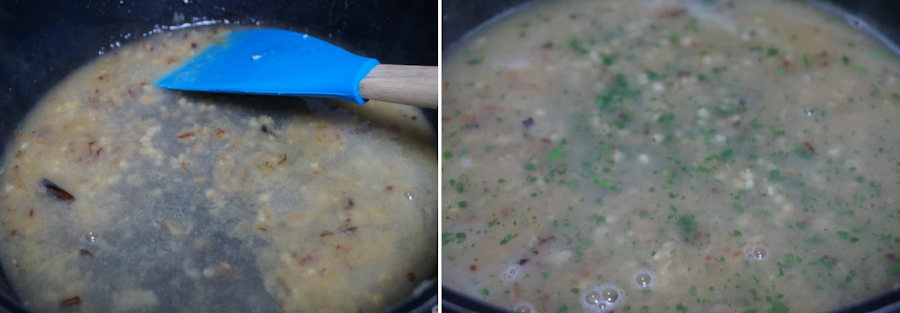 Dejamos reducir el vino unos 2-3 minutos para que se evapore el alcohol. Añadimos los ajos picados y un poco de perejil picado, añadimos un vasito de agua pequeño y dejamos 3-5 minutos se haga la salsa. Probamos de sal.