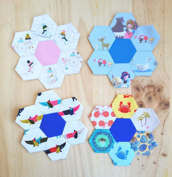 En este caso todos con dibujos recortados para aparecer en el hexágono.